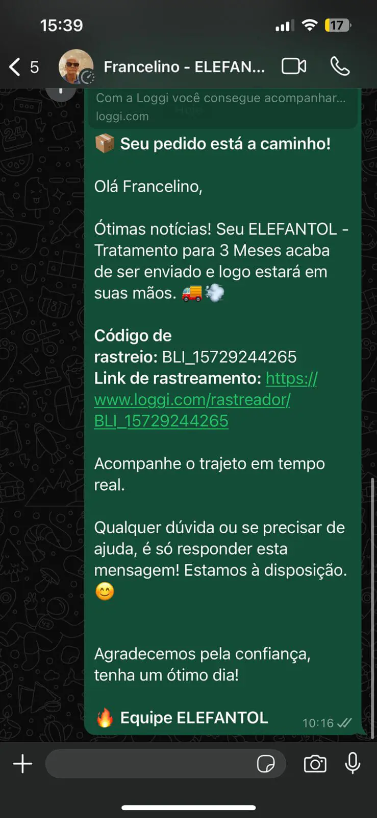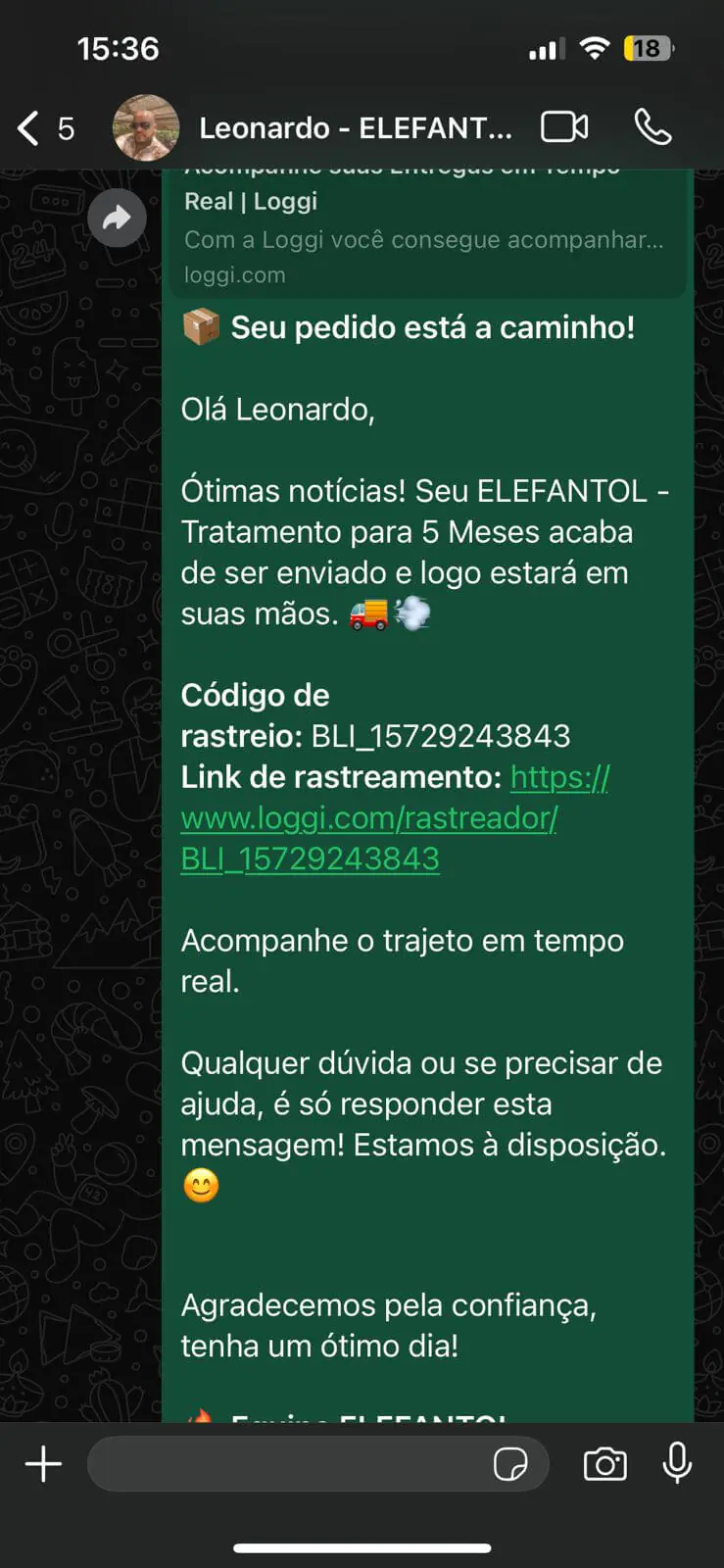 Qual o prazo de entrega Elefantol?